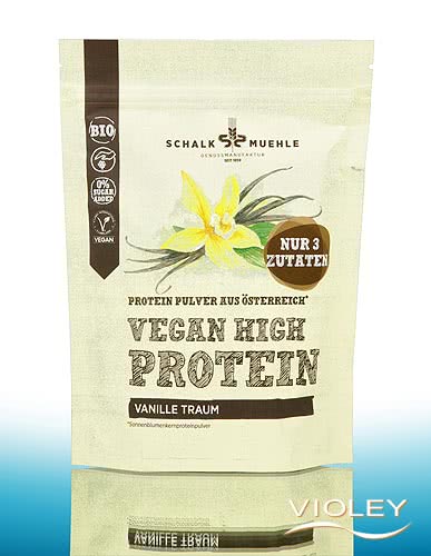 Schalk Mühle Vegan Organic High Protein Vanilla Dream. Met slechts 3 ingrediënten overtuigt het puur plantaardige poeder met smaak en kracht. Eiwitten uit zonnebloempitten geven energie voor de dag, terwijl vanillearoma en -extract zorgen voor een zoete traktatie. In een shake, smoothie, muesli, pap, yoghurt, toetjes of gebakken producten - met 48% proteïne is het poeder een heerlijke metgezel voor een actief dagelijks leven. Zonder toegevoegde suiker¹.