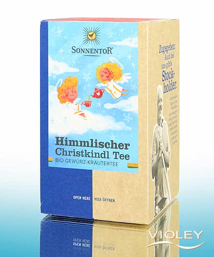 Sonnentor Biologische Hemelse Kerstthee. Kruidentheemelange die ontspant en de wachttijd op het kerstkindje verkort met de verfrissende smaak van deze thee die wordt afgerond met kerstspecerijen. De kerstthee glinstert in een rijke en heldere gele kleur. De kruidige aromatische geur met een aangenaam fruitige kaneelnoot betovert en wekt kerstgevoelens op. In de afdronk zorgen zoete nuances voor een kerstthee-ervaring. Deze thee past niet alleen bij allerlei soorten kerstgebak en traktaties. Hij kan op elk moment van de dag worden aanbevolen, bij een hartig ontbijt, een pittig tussendoortje of een zoete cake. Door de aangename zoete afdronk is hij ook geschikt als digestief.