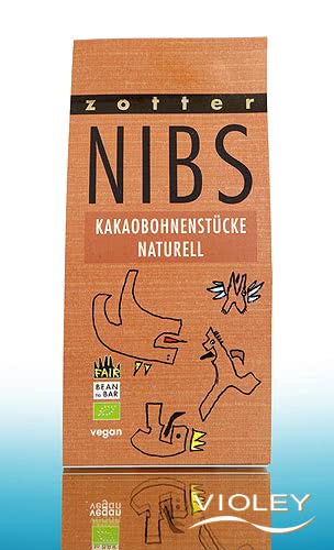 Zotter Biologische Cacaonibs, natuurlijk. Geroosterde Manabi-Inti Select cacaobonen uit Ecuador, gepeld en in kleine cacaonibs gehakt. Pure cacao-energie die direct opgepeuzeld kan worden, zoals Latijns-Amerikanen zouden doen, of gebruikt kan worden om gerechten en desserts te verfijnen.