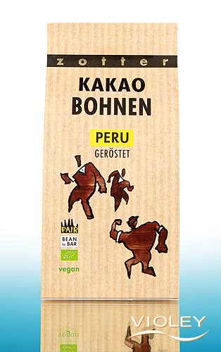 Zotter Biologische Cacaobonen Peru. Vers geroosterde, superieure Oro Verde cacao uit Peru met een uitgesproken fruitig en nootachtig aroma. Hele bonen, pure cacaokracht.