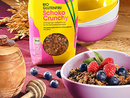 Qualquer pessoa interessada em desporto não pode ignorar a nutrição. Até os antigos gregos sabiam que os atletas tinham de se alimentar de forma diferente. As criativas misturas de muesli atuais não têm nada a ver com o mingau monótono da antiguidade. O Crunchy da Alnavit proporciona variedade na taça de muesli com sabores deliciosos. O Berry Crunchy combina aveia torrada com amoras, mirtilos, framboesas, groselhas e morangos. O Nut Crunchy, com flocos de trigo sarraceno aromatizados e castanhas de caju e avelãs torradas, proporciona um início de dia crocante. Para todos os fãs de chocolate, existe o Chocolate Crunchy. Chocolate preto vegan com cacau em pó combina com aveia torrada crocante, coco ralado e sementes de linhaça. O xarope de tâmaras proporciona uma doçura agradável e natural. O Oat Crunchy da Alnavit é cozido no forno com flocos de aveia integrais sem glúten até ficar crocante e impressiona com uma receita simples feita com apenas 5 ingredientes. Cada variante do Crunchy é vegana e sem glúten. Com frutas da estação e iogurte, leite ou bebidas à base de plantas, é um pequeno-almoço saboroso. O Crunchy também é adequado como cobertura crocante para a sua sobremesa favorita.