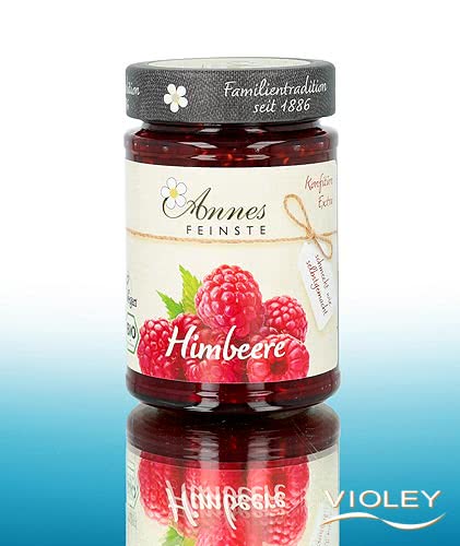 Celeia Extra de Framboesa Biológica Annes Feinste. Com pedaços finos de fruta, incluindo sementes. Com 55 g de fruta por 100 g. Uma tentação divinal, não só ao pequeno-almoço.