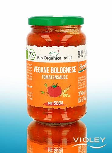 Molho de Tomate à Bolonhesa Vegan da Bio Organica Italia. Grânulos de soja, cenouras e, claro, muito tomate fazem deste molho uma deliciosa alternativa sem carne - não só para o prato de massa com o mesmo nome. Bom apetite.