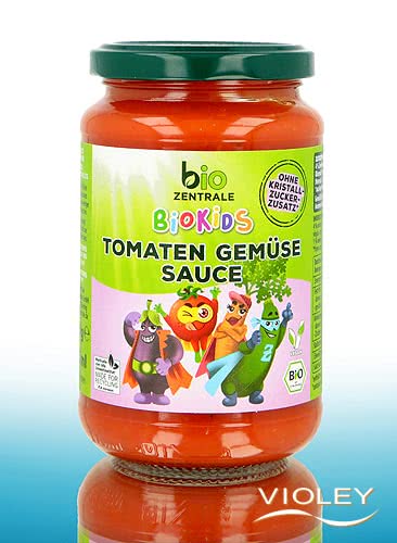 Molho de tomate e legumes Biozentrale BioKids. Com legumes cuidadosamente selecionados, como cenouras, curgetes e beringelas, bem como deliciosas ervas aromáticas em tomates frutados, o molho não é apenas impressionante em termos de sabor. A consistência também ganha pontos graças aos pequenos pedaços de legumes. Ideal para massa, arroz ou lasanha