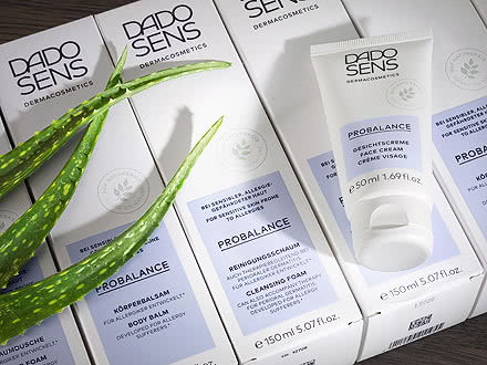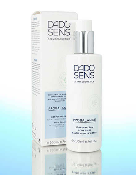 Especialmente para as necessidades da pele sensível, a DADO SENS desenvolveu a gama de cuidados ProBalance com os principais ingredientes activos raiz de alcaçuz e aloé vera. A Espuma de Limpeza ProBalance remove suavemente a maquilhagem e os produtos metabólicos específicos da pele. O Creme Facial ProBalance apoia o equilíbrio natural da pele e evita uma ligeira vermelhidão, ardor e comichão na pele. O Fluido de Olhos ProBalance com cafeína, óleo de noz de macadâmia e óleo de caroço de ameixa alivia as sombras escuras e os olhos inchados. A Espuma de Duche ProBalance refresca e estimula a pele sensível durante o duche. Finalmente, o Bálsamo Corporal ProBalance proporciona hidratação e cuidados adicionais. A gama de cuidados DADO SENS ProBalance ajuda as peles sensíveis a relaxar e a vencer os desafios do quotidiano.