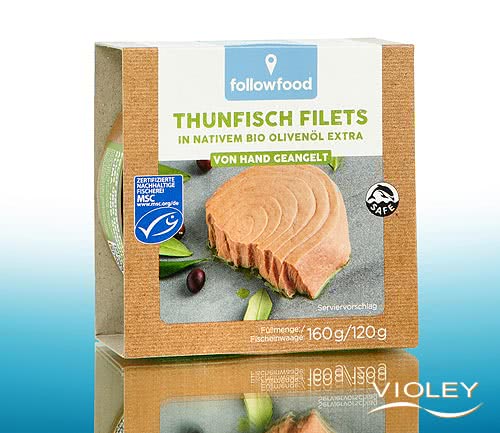 Atum em Conserva Followood em Azeite Virgem Extra Biológico. Esta conserva de peixe contém filetes de atum pescados à linha e à vara, conservados em valioso azeite. Desfrute deste popular peixe em saladas estaladiças, na pizza, no pão, como creme de atum ou também na forma pura.