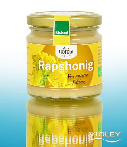 Mel de colza biológico Hofgut Eichigt. O mel de colza cremoso impressiona pelo seu sabor suave e fino. Desfrute-o como um creme para barrar ou utilize-o para adoçar alimentos e bebidas.