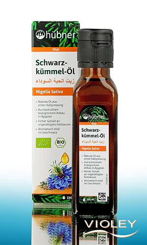 Óleo de cominho preto biológico Hübner. O óleo de cominho preto já era venerado no antigo Egito e era considerado o "ouro dos faraós". As suas propriedades foram imortalizadas em rolos de papiro. Tipicamente, a alta qualidade do óleo de semente preto biológico caracteriza-se pelo seu sabor puro e distinto e pelo seu aroma apimentado.