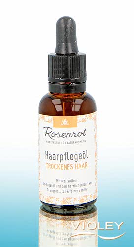 Óleo de cuidado do cabelo Rosenrot para cabelos secos. Este óleo de cuidado capilar cuida das pontas dos cabelos secos, deixando-os macios e flexíveis. Utilizando a pipeta integrada, o óleo de cuidado pode ser facilmente doseado e aplicado no cabelo seco ou húmido. Torna o cabelo mais fácil de pentear e deixa-o brilhante.
