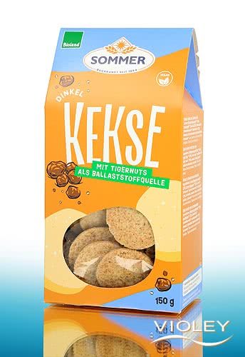 Biscoitos de Espelta Tigernuts Biológicos da Sommer. A doçura dos tigernuts faz lembrar o sabor das castanhas. Cozidos com farinha de espelta integral e farinha de espelta, os biscoitos são adoçados com açúcar de beterraba e aromatizados com coentros. Desfrute destes saborosos biscoitos com toda a família.