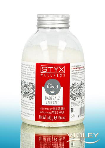 Sal de Banho Styx Be Loved. Faça uma pausa da vida quotidiana e encante os seus sentidos com este tratamento de mimo. Um banho com o sal de banho "be loved" proporciona-lhe uma brisa marítima calmante com um toque de rosa selvagem de cheiro agradável.