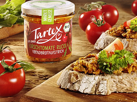 Se não quiser comer produtos de origem animal, não tem de passar sem um "Abendbrotaufstrich". Os cremes para barrar veganos da Tartex são tão saudáveis e saborosos como as melhores pastas de carne. Ingredientes vegetais de alta qualidade como o tomate, o pimentão ou as sementes de girassol são a base das deliciosas variedades. Não são só os vegans que vão achar estes cremes irresistíveis. Aqueles que gostam de sabores mediterrânicos e saudáveis vão adorar o Creme de Rúcula com Tomate Cereja Biológico. Os saborosos tomates e a nota delicada e amarga da rúcula encontram-se numa ligação particularmente deliciosa. O creme biológico de tomate e azeitona tem também um toque mediterrânico encantador. Azeitonas verdes e pretas selecionadas conferem a este creme vegetal o seu sabor inimitável. É uma verdadeira delícia, especialmente em pão integral escuro.