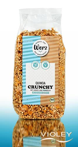 Es gefällt mir sehr gut, dass ich endlich einmal das Quinoa Crunchy probieren konnte,welches hier vor Ort leider nicht so leicht für mich zu bekommen ist. Wunderbar, dass es eine Firma gibt, welche dieses wertvolle Getreide zu einem Crunchy verarbeitet, in welches weder Zucker noch Honig getan werden. Ich habe es gar nicht nötig, auf Glutenfreiheit zu achten, möchte aber keinen erhitzten Honig zu mir nehmen.