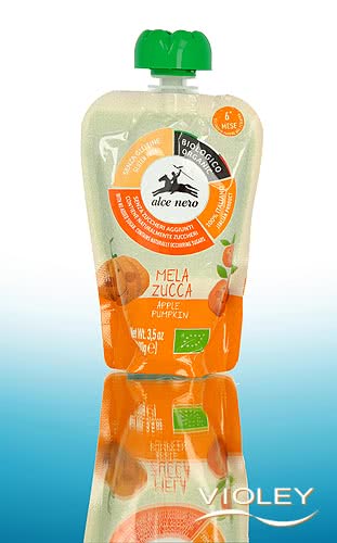 Alce Nero Pouchy Organic Apple Pumpkin. Sweet apple meets mild pumpkin, both from 100% Italian cultivation and reduced to the essentials - pure fruit and vegetable puree. The practical squeeze packaging makes it the ideal companion for on the go.