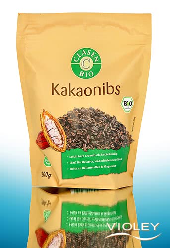 Cocoa nibs from certified organic farming.