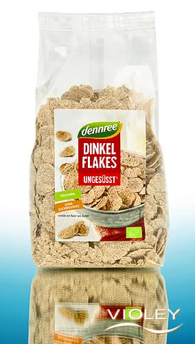 dennree Wholemeal Spelt Flakes. The spelt flakes are made from organic wholemeal spelt flour with no added sugar¹. With cold milk, yoghurt and fresh fruit, they make a wonderful daily breakfast. But they are also a crunchy snack on their own. Enjoy the savoury, nutty taste.