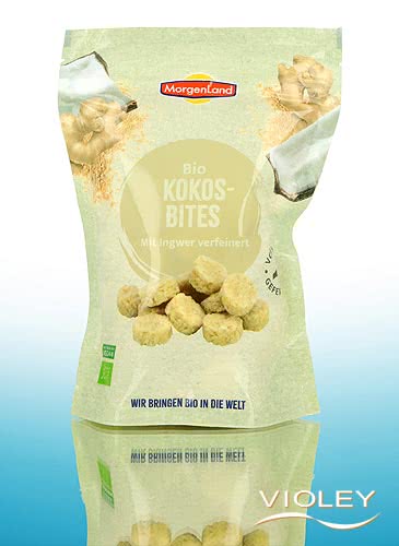 Morgenland Organic Coconut Bites Ginger. Organic puffed rice snacks with exotic coconut flakes and a hint of ginger. Perfect with tea or as a snack.
