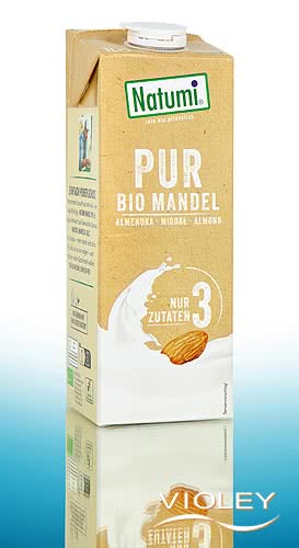 Natumi Organic Almond Drink Pure. A pure organic almond drink, mild in flavour and versatile in use. Ideal to enjoy on its own, but also suitable for cooking, baking or muesli. A natural, purely plant-based product made from carefully processed organic almonds.