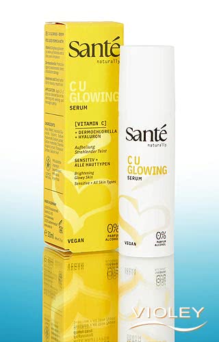 Sante C U Glowing Serum. This serum nourishes the skin, moisturises and supports the regeneration of skin cells. Vitamin C protects against oxidative stress and promotes an even complexion. Hyaluronic acid provides long-lasting moisture and makes the skin supple. The algae extract Dermochlorella has an additional cell-protecting effect and strengthens the skin's resistance. It is suitable for all skin types and for daily application.