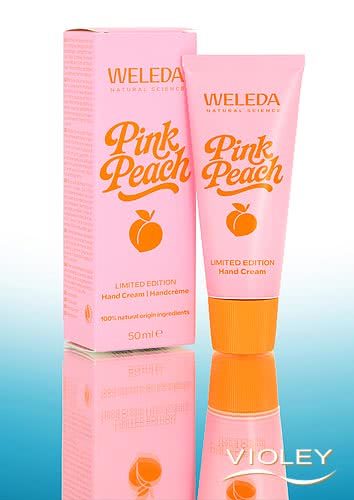 Weleda Pink Peach Hand Cream. This fast-absorbing hand cream pampers your skin during the warmer months. With notes of juicy peach, vibrant orange and a hint of delicate jasmine, its natural fragrance fills the air with the carefree spirit of an endless summer.